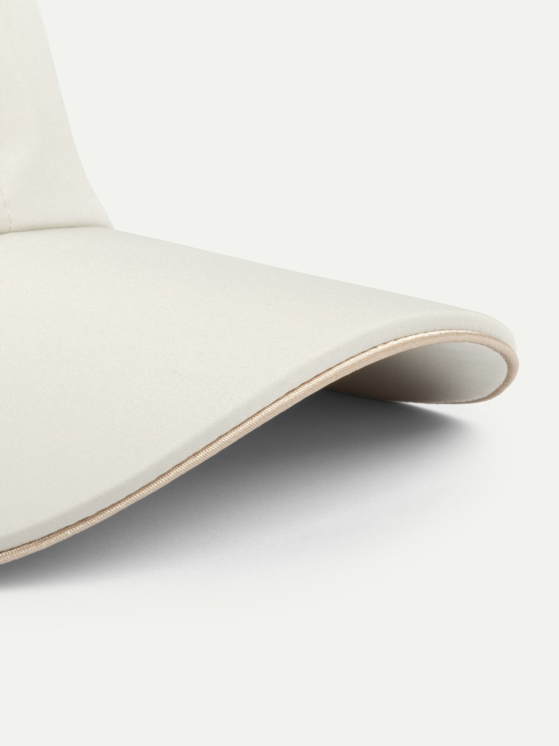 This baseball cap has been made in Italy from luxurious technical fabric. The soft matte outer shell is crafted from recycled fish nets and boasts a wind- and waterproof finish, while the interior is lined with 100% cotton for ultimate comfort. A refined detail, the signature Ziamore gold satin piping around the brim. Ideal for refined leisure looks.