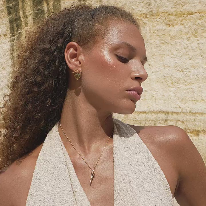 Geïnspireerd door de Keltische godin van de liefde, leiden de Aine hartoorbellen je naar een tedere liefdesaffaire. Met een glinsterend hartsilhouet en een strikje, combineer ze met oceaanmotieven of de bijpassende armband en ketting voor een complete vrouwelijke look.