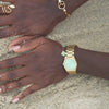 Schatten van de oceaan, tijdloze elegantie. Sierlijke blauwe stenen aan een delicate ketting, geïnspireerd op de natuurlijke schoonheid van de zee. Draag ze in laagjes om je eigen stijl te creëren, of combineer ze met de Amaya Aqua oorbellen voor een complete look.