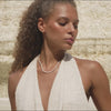 Een waar klassiek statement: de Celestial Sea-ketting is versierd met glanzende parels die de kalme stroming van de oceaan nabootsen. Deze parelchoker is een toonbeeld van verfijning en perfect om alleen te dragen voor een ingetogen elegantie, of om te combineren met andere chokers voor een moderne twist.