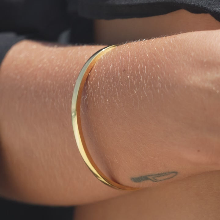 Een understatement in een sieraad. De Hemera-armband is een modern en toch vrouwelijk ontwerp. Minimalistisch maar toch gedefinieerd, deze bangle maakt op zichzelf al een statement met een superglanzende, luxe afwerking. Combineer met de Hemera-ring en -ketting voor een gelaagde look.