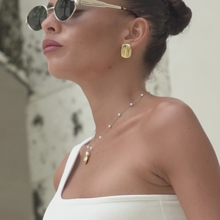 Oceaan-geïnspireerde elegantie, opnieuw uitgevonden. Geïnspireerd door het koraalrif, heeft deze charmante ketting een grillige schelp- en sterhanger aan een ketting bezet met sierlijke parels. Een passend feest voor liefhebbers van opvallende maar delicate sieraden. Neem de oceaan overal mee naartoe.