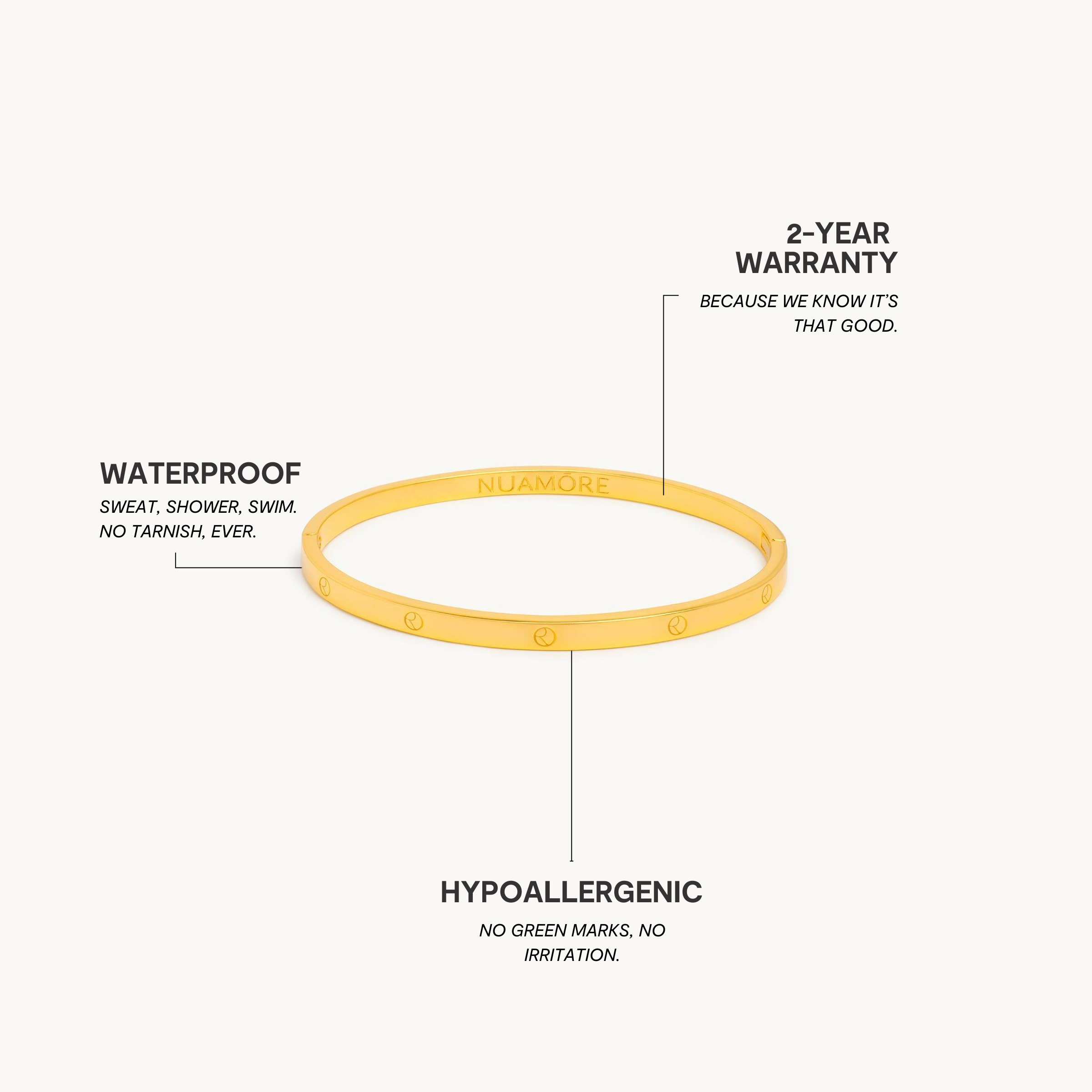 Maak kennis met het icoon. De Nua-armband is gepolijst en geperfectioneerd met ons kenmerkende logo. Geniet van de luxueuze, tijdloze look en superglanzende afwerking die glinstert als je beweegt en je stijl naar een hoger niveau tilt. Combineer met andere armbanden en de Nua-ring voor een echte, exclusieve look.