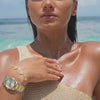 Vloeiende elegantie, tijdloze charme. Maak kennis met de Ocean Pebble ketting: een op de oceaan geïnspireerde schakelketting met een klein kiezelsteentje dat subtiel op het sleutelbeen rust. Draag hem voor een vleugje verfijnde elegantie of combineer hem met andere kettingen om je eigen, kenmerkende stijl te creëren.