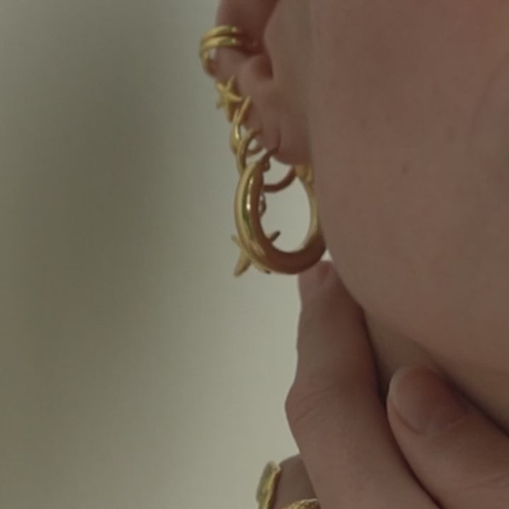 Oceaan-geïnspireerde elegantie, opnieuw uitgevonden. Deze kleine steroorbellen brengen een vleugje klassieke verfijning met een moderne twist. Draag ze solo voor een verfijnde afwerking of combineer ze met andere oorbellen voor een chique, zorgvuldig samengestelde oceaan-geïnspireerde oorbel.
