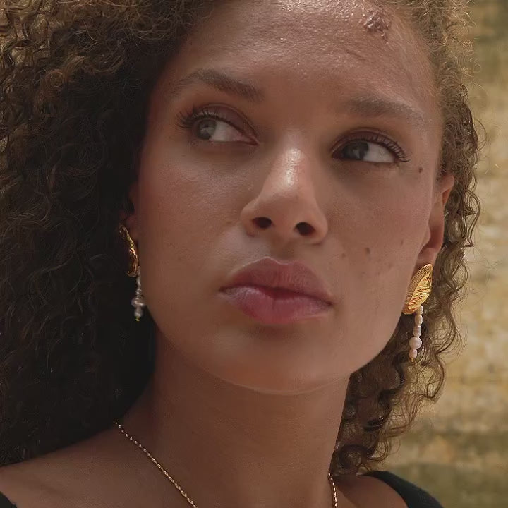 Een statement oorbel die al je looks naar een hoger niveau tilt. Sora, een gebeeldhouwd schelpontwerp met een rij parels, is waar vrouwelijkheid en durf samenkomen. Combineer hem met minimalistische oorbellen of andere parelsieraden en neem de oceaan overal mee naartoe.